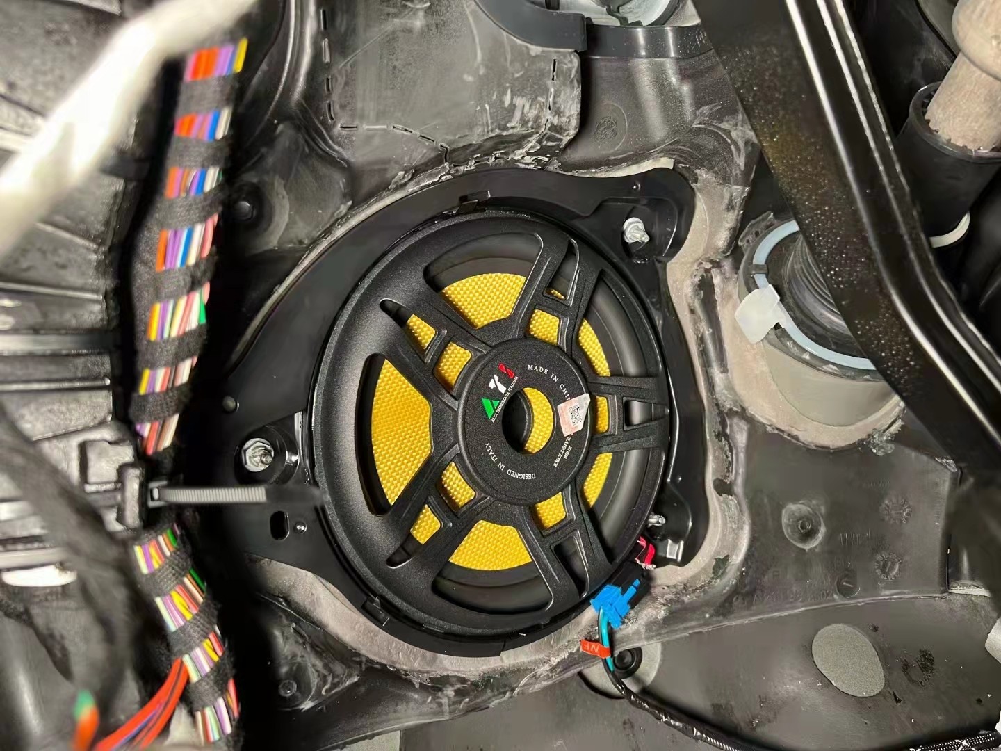 因为是专用系统,施工就比较简单,只需拆掉原车喇叭,把ATI专用喇叭替换上去,专用线束对插,加上DSP安装和布线,整个施工过程标准化流程,非常简洁高效。
