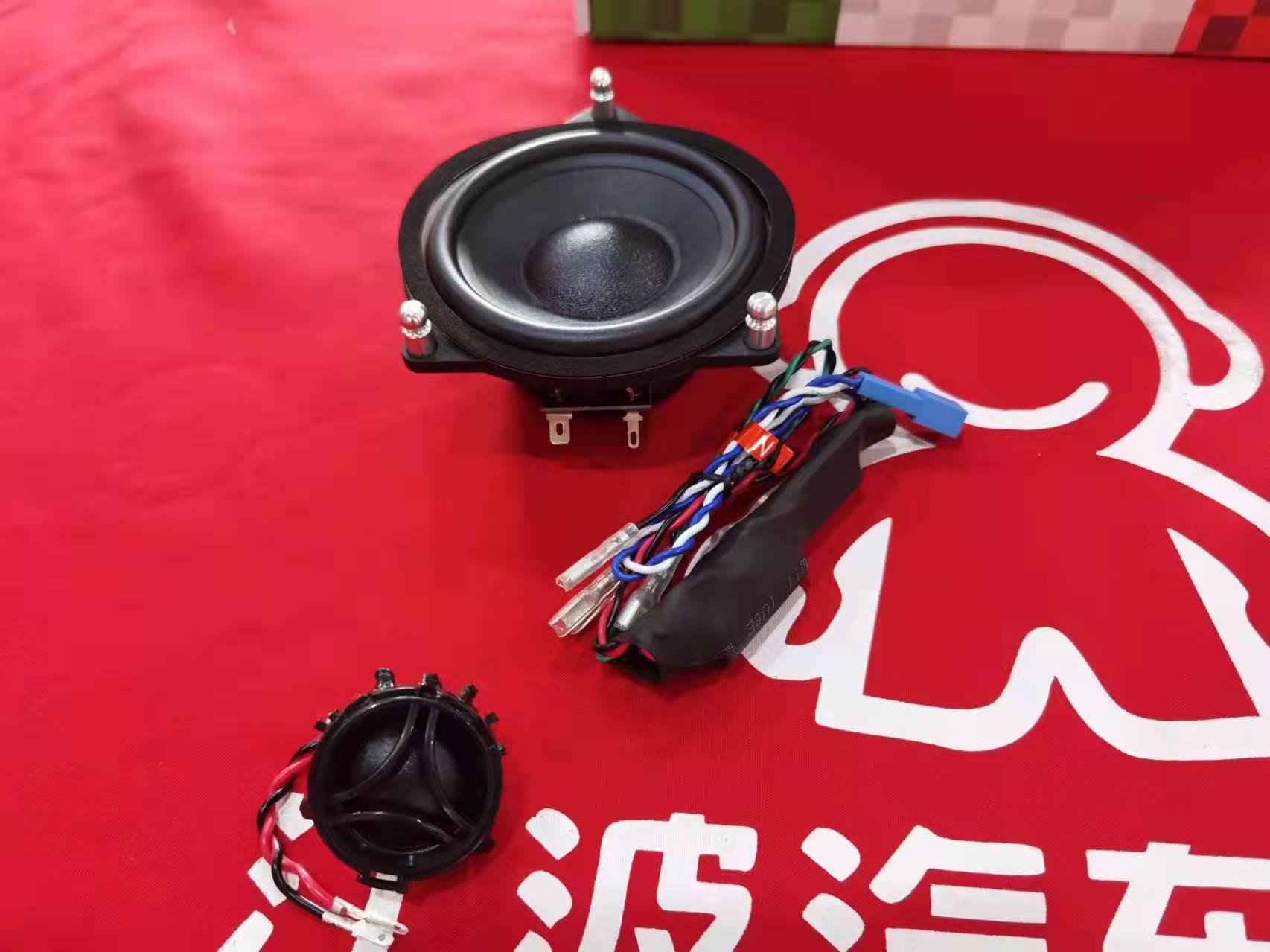 后声场2个喇叭,再加1个中置喇叭,加强声场。所有喇叭都是专车专用造型,在原车喇叭位安装。不用拆车,不用破线,配专用线束对插。