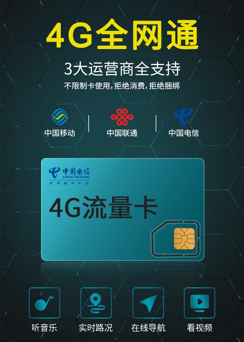 4G全网通3年基础流量导航+语音唤醒+车机版微信任意用。