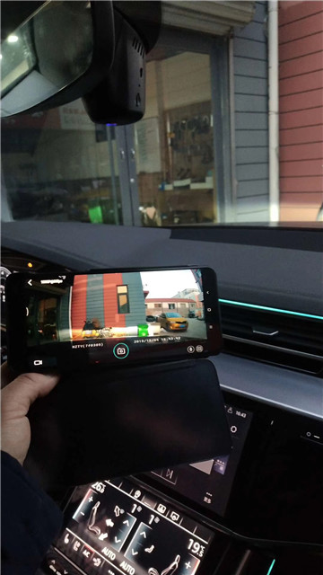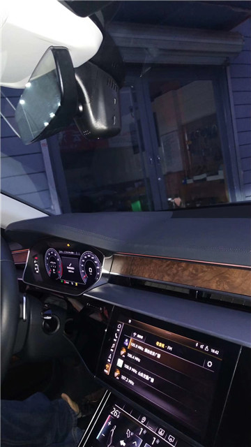 海圳隐藏式记录仪 安装奥迪A8L效果 专车专用 原车风格设计 线束隐藏 手机APP查看视频播放 重要视频随时下载 无需电脑操作